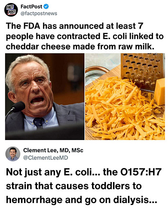 The FDA has confirmed an outbreak of E. coli O157:H7 tied to cheddar cheese made by the RAW FARM–brand. Toddlers are already sick. Some have been hospitalized.