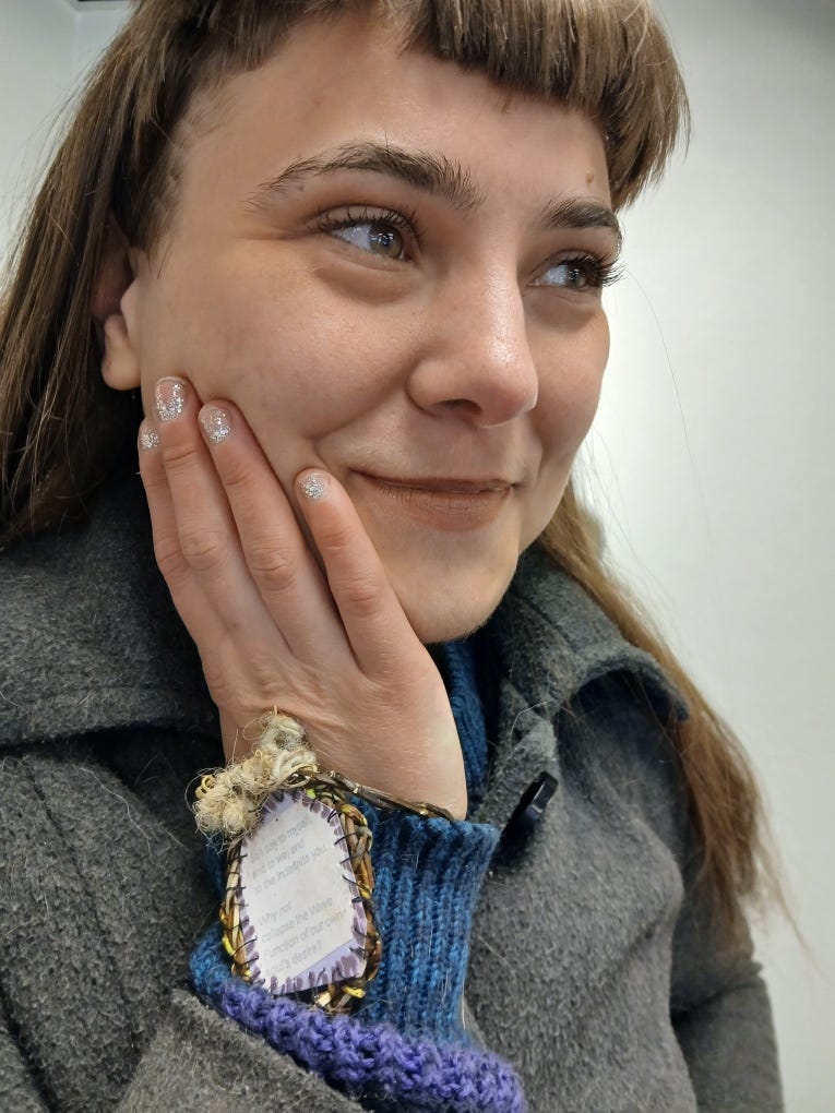 Q'eylish (willow) hoop earrings made with tlegh (beach grasses) and metallic paint.