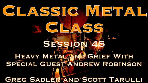 Tomorrow at Noon Central Time, Scott and I host a special guest in session 45 of Classic Metal Class, Andrew Robinson, a fellow metalhead writing a dissertation on philosophy of grief. Enroll in the free course site to get the link for the session