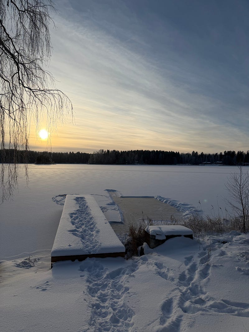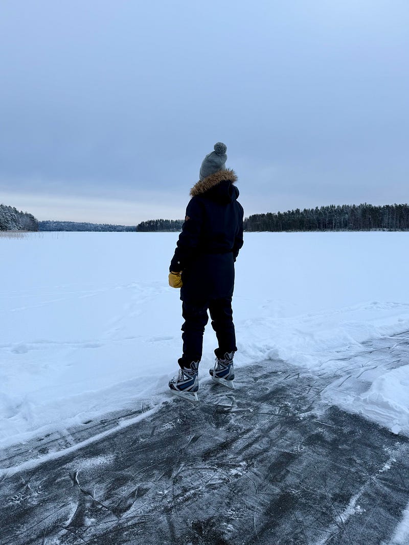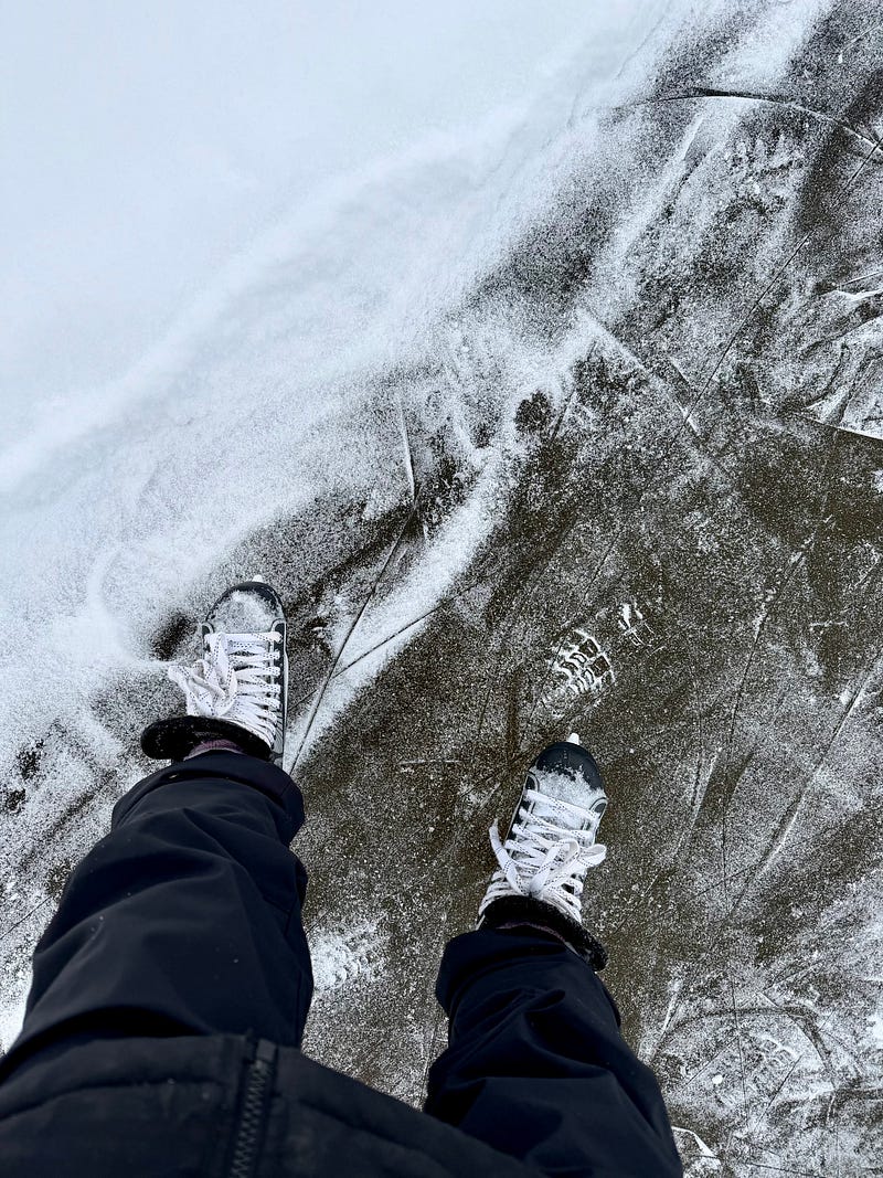 Ice skating at the cottage on the frozen lake. We cleared a small rink and a little track. It was so nice! And of course, after skating, we had something warm to drink inside the cottage. My son also went skiing. I can’t wait for the ice to get stronger so we can go on a skiing trip to the island. ⛷️⛸️💙