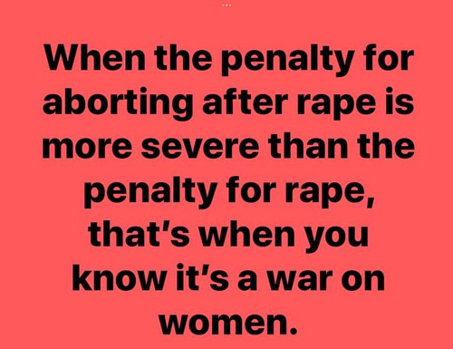 "When the penalty for aborting after rape is more severe than the penalty for rape, that's when you know it's a WAR ON WOMEN."