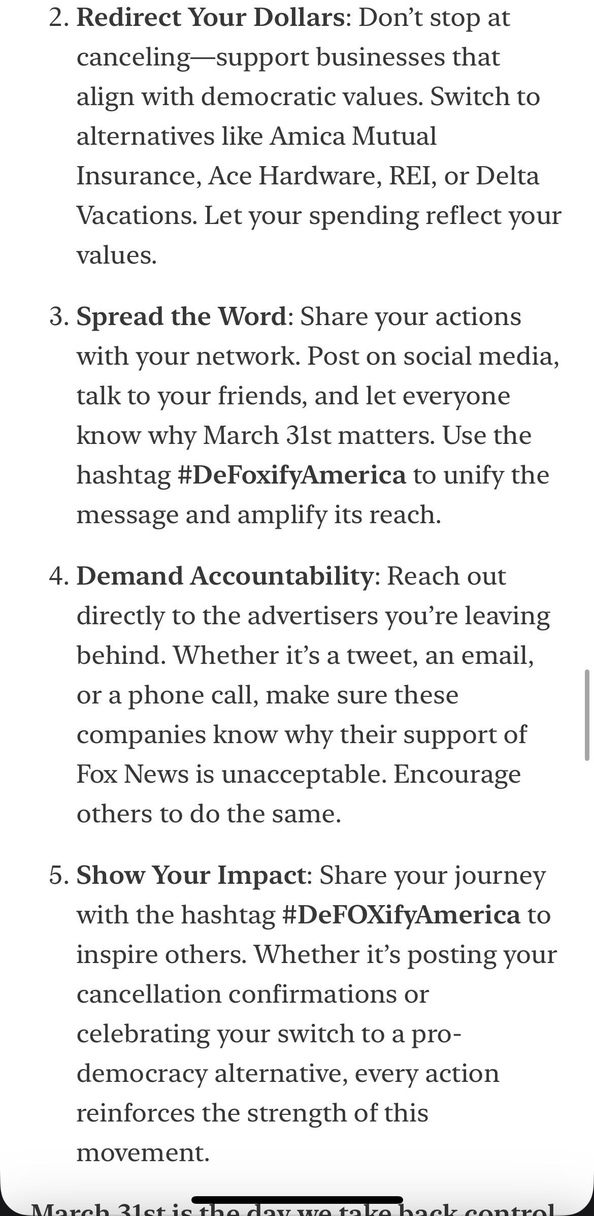 Use the hashtag #DeFoxifyAmerica to unify this message and amplify its reach - which culminates this Monday, March 31
