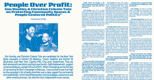 Liz Pelly interviews two NYC DSA candidates running for assembly (and commercial rent control!) read up:
