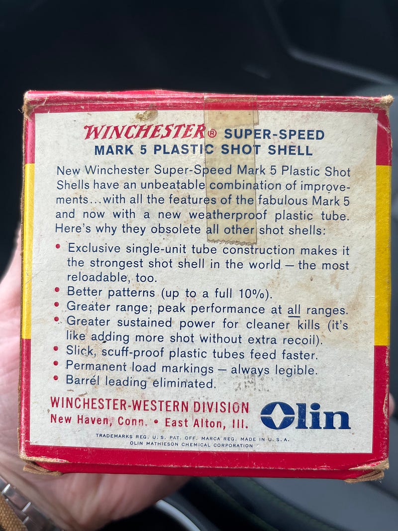 I made a run to Cabela's stores.cabelas.com/us/p… for some odds and ends. We've had some old 16 gauge and .303 English ammunition for guns we no longer own that I've been trying to donate or dispose of for years. I find it really odd that police stations or Game Wardens don't take it as they do in Germany. So on my way back, I passed by the Perry Township Game Association perrygunclub.com on Moselem Springs Road (662) between Shoemakersville and Virginville, and two young guys on the range took it off my hands. I always take photos of old packaging; the 16s were from when plastic shotgun shells were still a novelty.