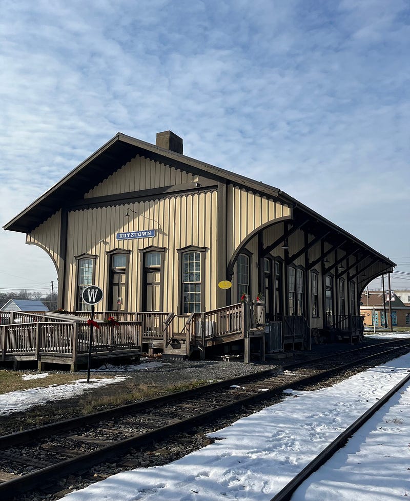 The Allentown and Auburn Railroad allentownandauburnrr.com runs excursion trains from Kutztown station to Topton and back, so I stopped by to see their "Santa Train" come in. The train station doubles as the local borough council meeting room en.wikipedia.org/wiki/K… .