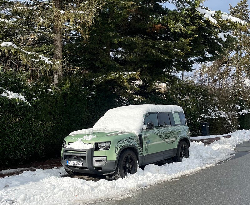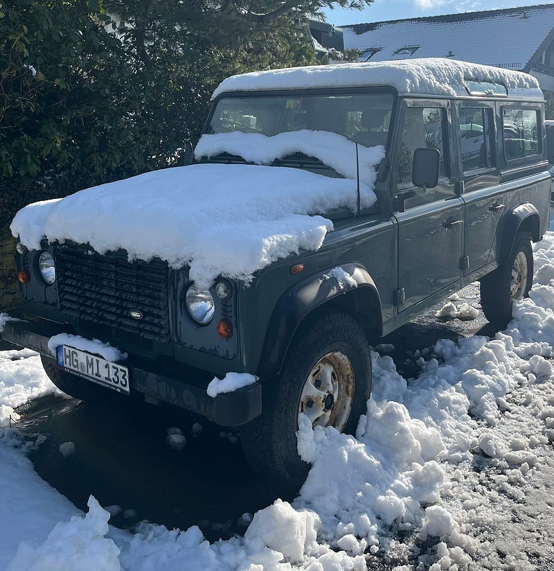We received some wet snow last night. Yesterday, my daughter spotted a Puma (2007-2016) Old Defender belonging to some folks she knows in Ober-Eschbach; it appears to have been customized.
