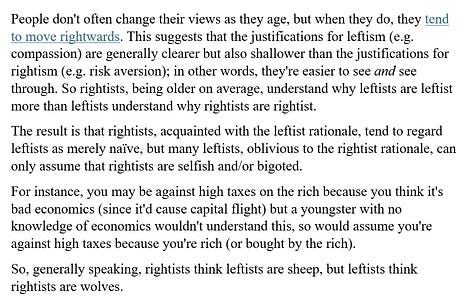 In a 2022 newsletter, I gave one reason why I think leftists are more likely than rightists to celebrate opponents’ deaths.