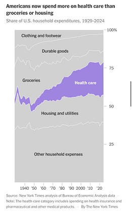 💸 Other goods got cheaper (thanks to globalization and automation), while healthcare stayed relatively labor-intensive and hard to scale.