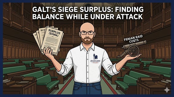 In the sweltering Ottawa chamber on June 26, 1866, Finance Minister A.T. Galt rose before the Legislative Assembly with Canada’s fate hanging in the balance. Fenian raiders had just crossed the border, the United States had torn up the Reciprocity Treaty, and Confederation was still a dream. Yet Galt announced a $596,355 surplus—proof that Canada could stand on its own revenues, even under siege.