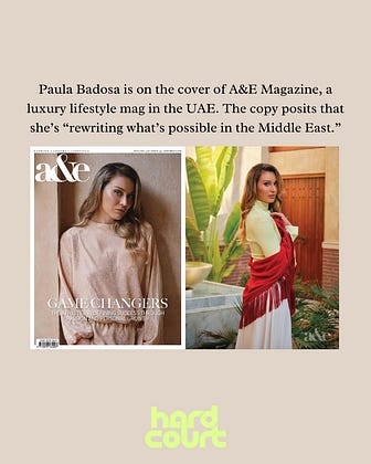 Paula Badosa is on the cover of A&E Magazine, a luxury lifestyle magazine in the UAE. The copy posits that she’s “rewriting what’s possible in the Middle East.” What are your thoughts?