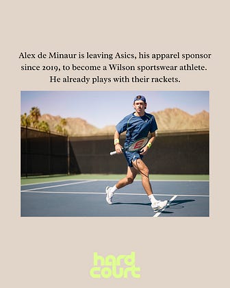 🚨 Breaking kit news: Alex de Minaur is leaving Asics for Wilson. The brand has done a tremendous job with their women’s kits and I suspect they’ll cook up something exciting on the men’s side for Alex.