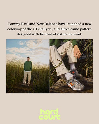 Tommy Paul and New Balance have released a new “Outdoor Court” colorway of the CT-Rally v2 sneaker—it’s the first time the iconic Realtree camo pattern has been turned into a shoe and who better to sell that than fisherman Paul?