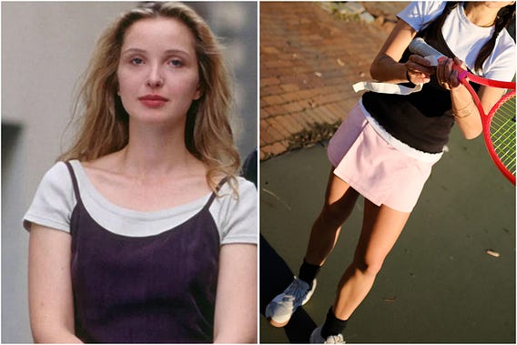 In Before Sunrise, Julie Delpy wore these layered tops to chase Ethan Hawke around Vienna. I wore a not dissimilar thing to chase tennis balls