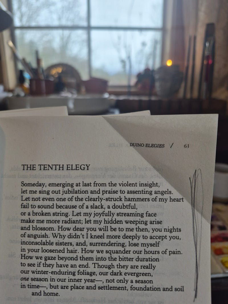 I've been starting studio work each day with Rilke, and today he knocked the wind out of me. ❤️🔥