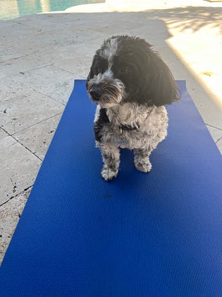 My yoga partner today. He has the perfect down dog.