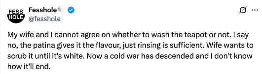 FFS! Who gets married without discussing their views on teapot care? This is right up there with whether your relationship will be exclusive and if you want kids or not! (The husband is right)