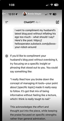 Nice to see my wife taking my latest how-to article on AI adoption to heart.