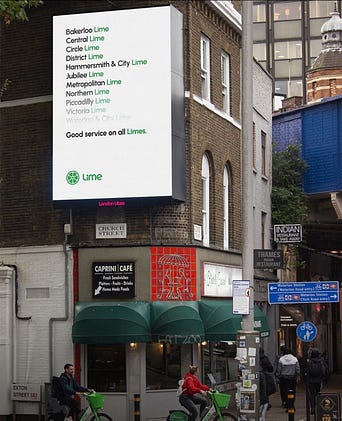 Great reactive marketing from Lime bikes in response to the tube strikes on the London Underground! Take a bow!