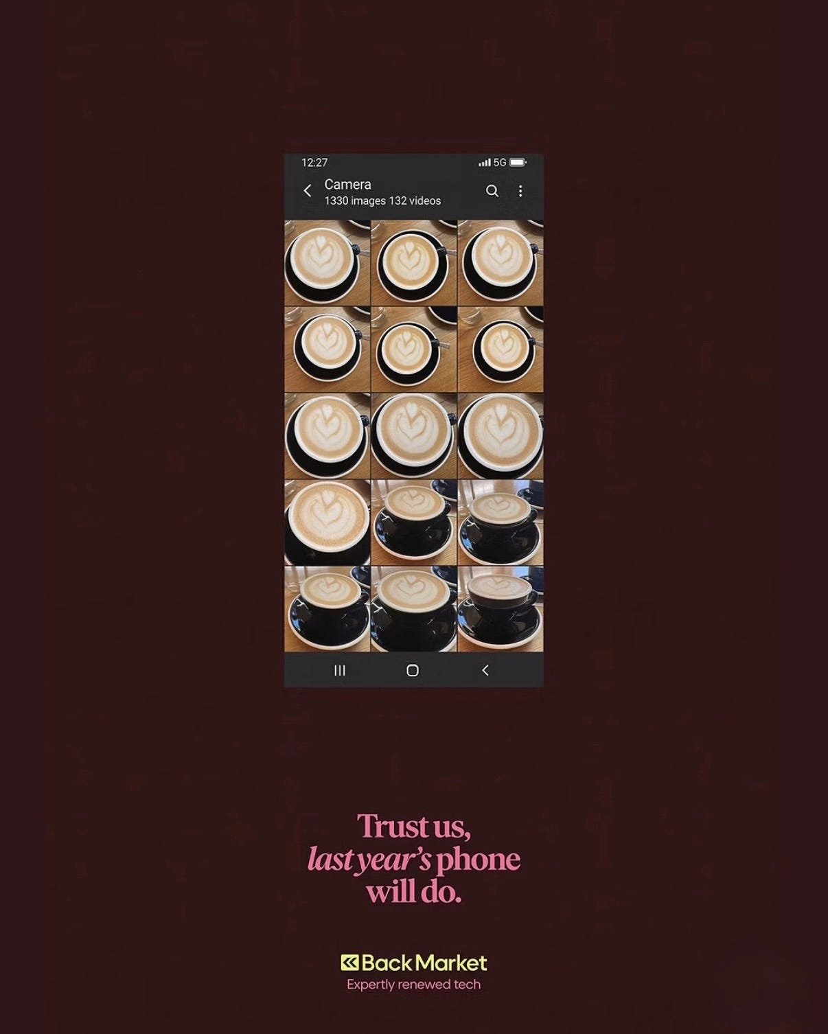 BackMarket using some hard hitting marketing to communicate the danger of falling for the ‘I need the newest one of those’ mentality. Simple but oh so effective