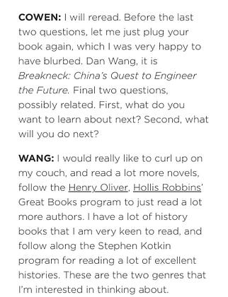The excellent Dan Wang wants to follow the Henry Oliver and