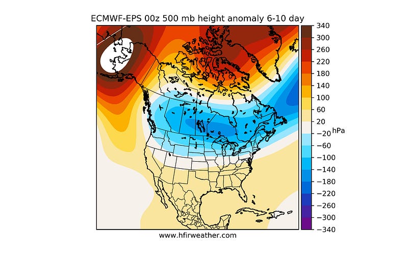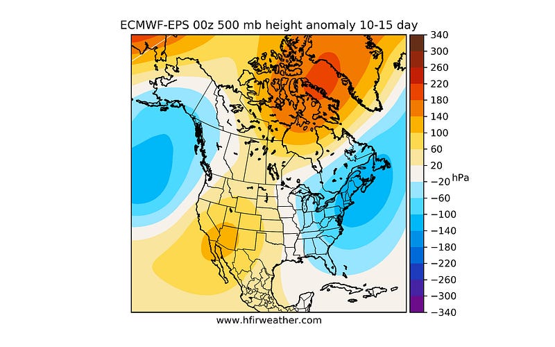 The issue is that the 15-day trend turns into a warmer-than-normal outlook with the Alaska ridge disappearing. I think it's transitory.