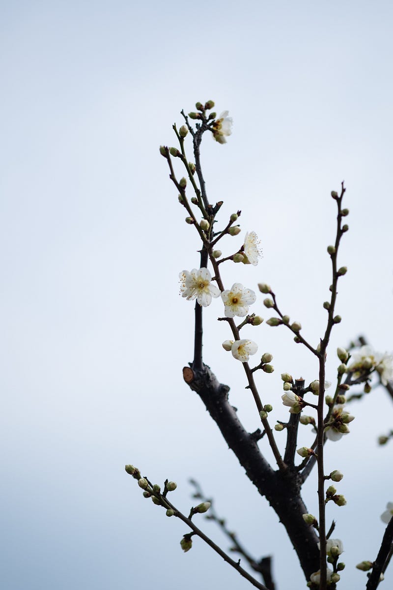 The cold days are still lingering, but here and there in my neighborhood, the plum blossoms have already started to unfurl.