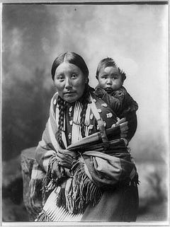 Portrait of Stella Yellow Shirt and baby, of the Dakota people, 1899.