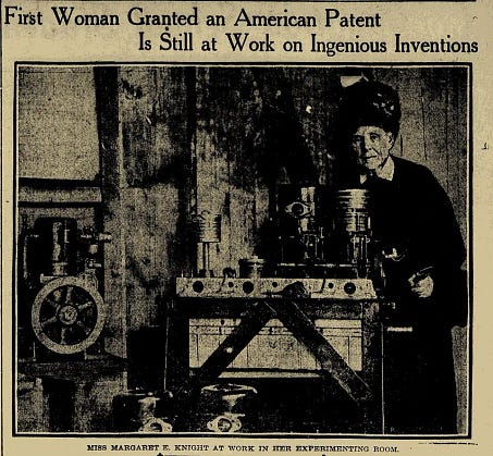 But Margaret didn’t stop there. Over her lifetime, she received at least twenty-six patents, though some records suggest there were more. She designed machines for cutting shoe soles, improvements to rotary engines, window frames and sashes, dress shields, and numbering mechanisms, among other inventions.