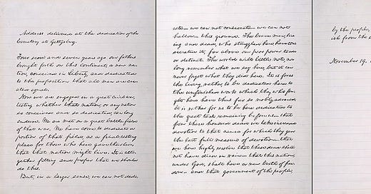 Still, Lincoln went. Gettysburg had not been the same town since the battle in July. About seven thousand men had been killed, many hastily buried in the July heat, in shallow graves that would soon have to be opened again. In some places, blackened hands, arms, and legs protruded from the earth, what Pennsylvania’s Governor described as “the devil’s own planting… a harvest of death.” Thousands of dead horses were also burned or buried outside of town. The stench of it all had made people sick for miles around.