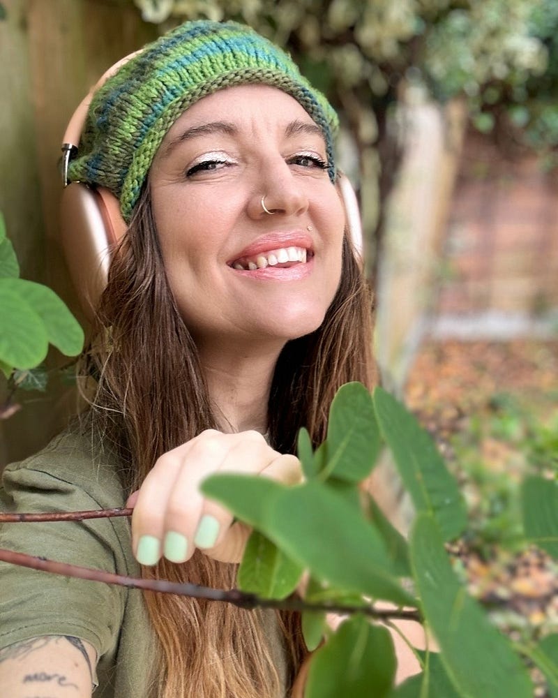 Hi. This totally candid, natural photo of me casually wearing headphones in the garden is to share with you that the second episode of my solo monthly podcast, Notes to Self, is out now ✨