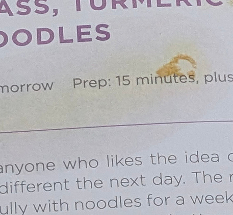 This is always the sign of a good recipe. The whole page is stained with layers of oil and turmeric from making it many times. 😂