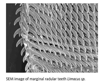 Since I showed you sea slug teeth, here are land slug teeth, called radula.