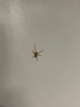 Sack spider! I put it outside so the cat doesn’t maul it. Hard to have inside spider friends with cat.