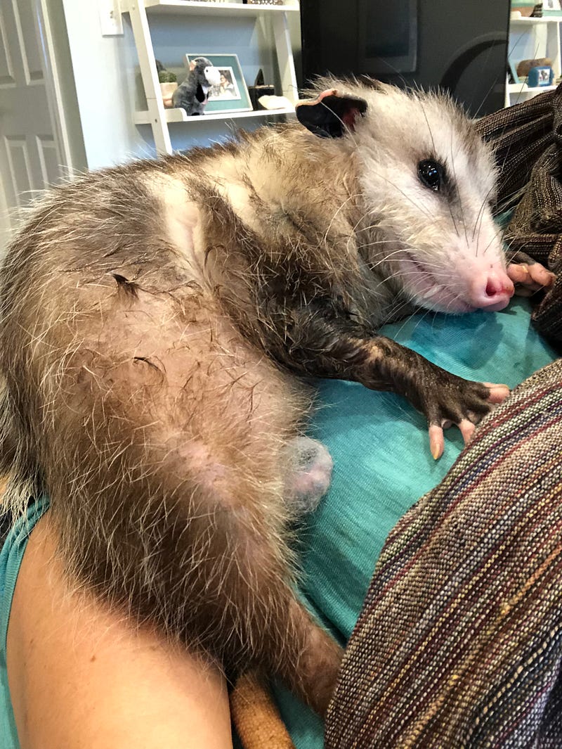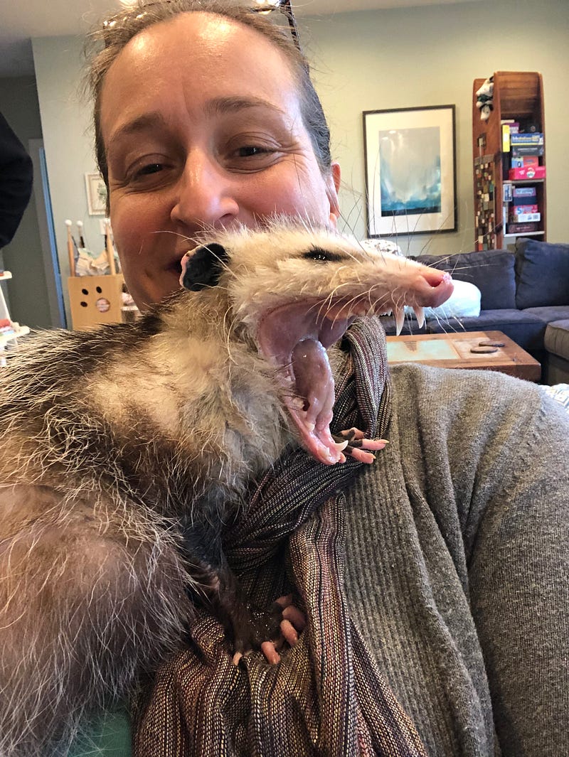 One time, an opossum puked on me.