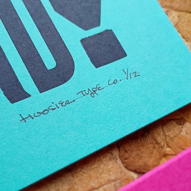 Printed using antique wood type, hand set, hand inked, and hand pressed 👍
