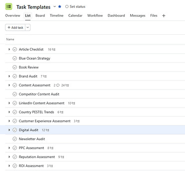 Inside Asana I keep a library of marketing analysis templates that I use when researching articles, auditing brands, or assessing campaigns.