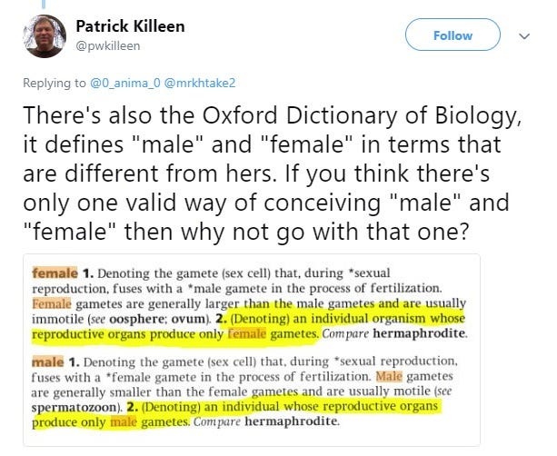 If you can’t or won’t say what EVERY member of EVERY anisogamous species MUST have to qualify as male or female then the terms are pretty much useless.