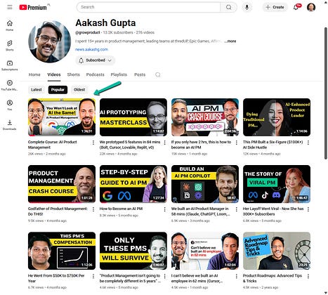 Oh wow. The most popular AI PM video of all time by Aakash Gupta 🙏