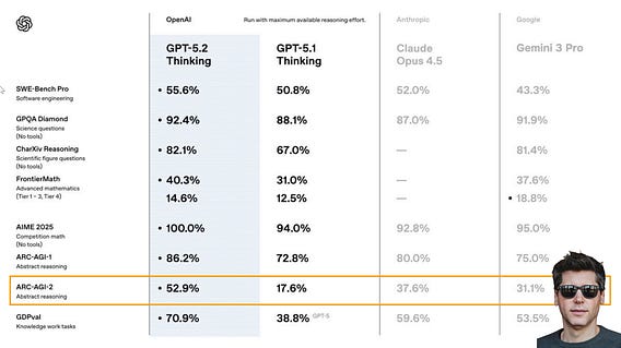 Some say the next metric (GDPval) is even more impressive. It measures real-world knowledge work across 44 jobs. GPT-5.2 matches or beats humans about 70.9% of the time.
