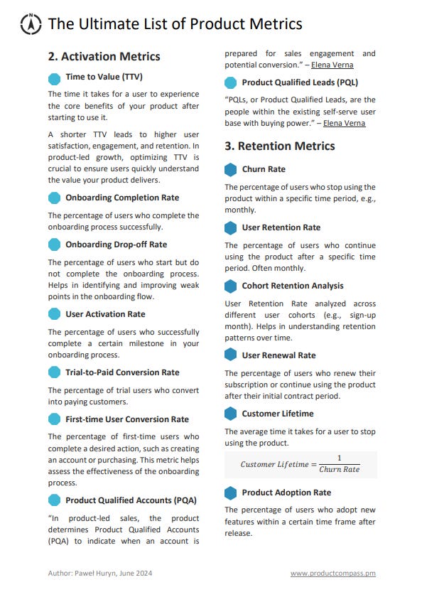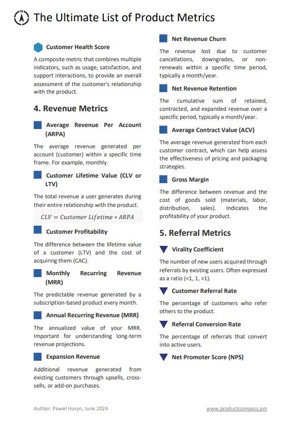The ultimate list of product metrics for PMs, June 2024 (PDF):