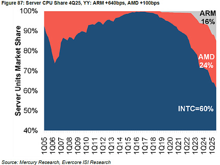Intel kept losing server market share to AMD in 2025 for the ninth consecutive year