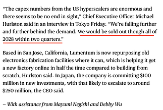 Lumentum CEO: "We're falling further and further behind the demand. We would be sold out through all of 2028 within two quarters."