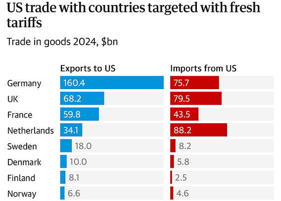 🚨BREAKING: Global markets are bracing for turbulence after Trump’s new Greenland-linked tariff threats (10% from Feb. 1, rising to 25% from June 1 on multiple European allies). Weekend trading indicators point to stock losses when London reopens Monday and Wall Street reopens Tuesday, while investors pile into “safe havens” like gold and silver.