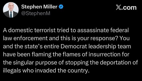 🚨BREAKING: Stephen Miller is now claiming the man killed in the CBP shooting was an “assassin” and a “domestic terrorist.” No charges. No court record. No public evidence—just a headline-sized accusation, posthumously stapled to a corpse. I would like to cancel my subscription to America now.