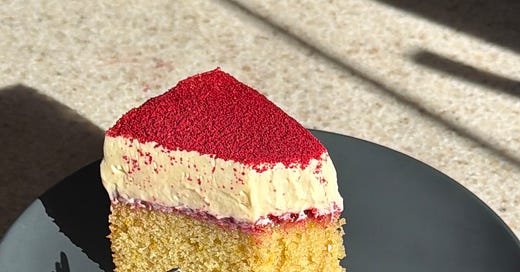 another break from the sea of cookie recipes :) cirtus olive oil cake with raspberry jam and a tart citrus mousse xx