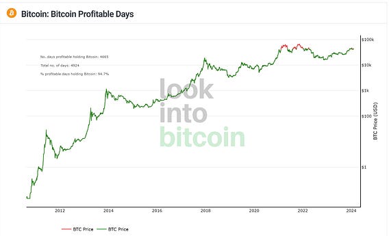 Only those who purchased Bitcoin at the absolute tops of the previous cycle are not in profit.
