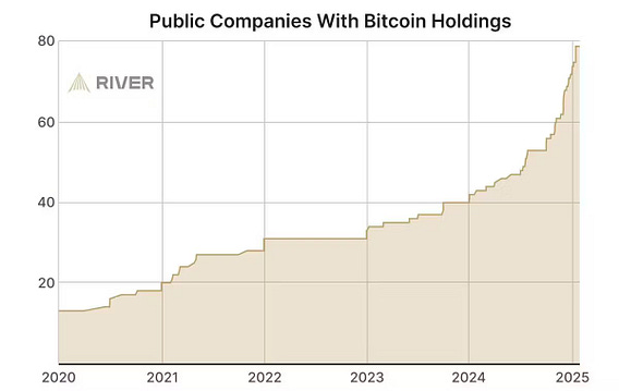 This chart shows the number of publicly traded 🇺🇸 companies that hold Bitcoin in their treasury.
