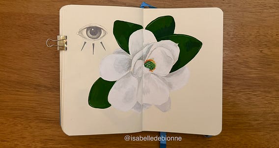 Sketchbook explorations: painting white flowers like this magnolia was a real challenge today (yesterday’s daffodil in comparison seemed a lot easier). The shadows are subtle so it’s really a play of white and greys.