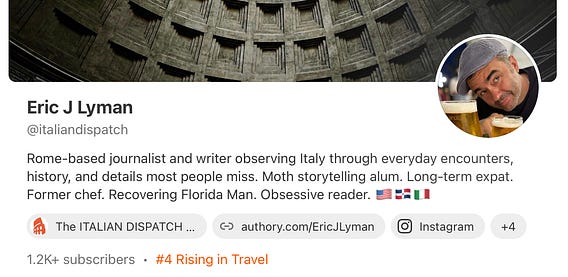 I have no idea what these rankings are based on, and I don’t consider myself a travel writer as much as a cultural observer. But I’m flattered the Dispatch appears among Substack’s top travel newsletters.
