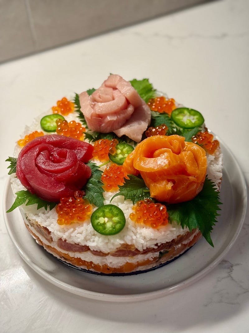Made a sushi cake for my bf’s birthday (he doesn’t have a sweet tooth)! This was so fun to make :) Recipe just posted!